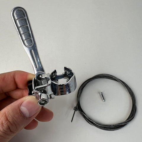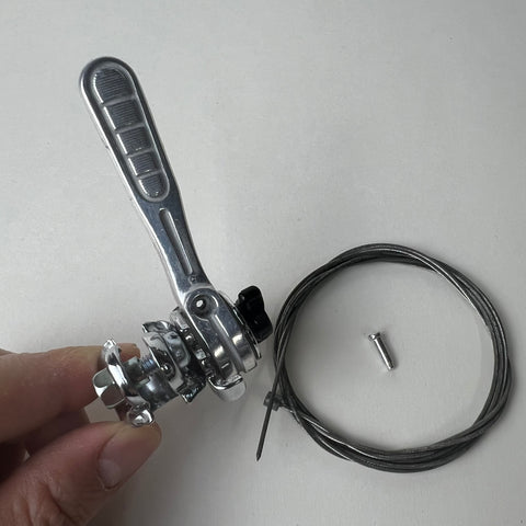 THIS IS A VINTAGE BICYCLE SHIFTER. THE SHIFTER IS STEM MOUNT TYPE. THIS SHIFTER SHOULD FIT ALL OF THE 21.1MM STEM, I TESTED THE SHIFTER ON A SCHWINN STEM AND IT FIT, MOST SCHWINN STEM ARE 21.1MM. STAMPED SHIMANO / PRODUCT OF JAPAN ON THE SHIFTER. COME COMPLETE WITH BOLT / NUT / 1 INNER CABLE (APPROXIMATELY 64" LONG) / 1 CABLE END TIP. THE SHIFTER IS NEW OLD STOCK, MIGHT HAVE SOME SHELF WEAR FROM BEING STORAGE. YOU GET THE SHIFTER SET ONLY, NOT WITH THE STEM LIKE THE LAST 2 PHOTOS SHOW.