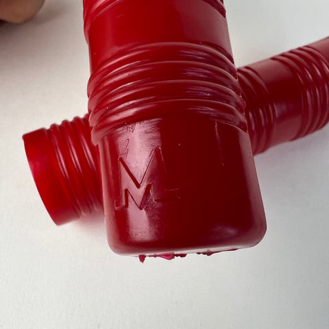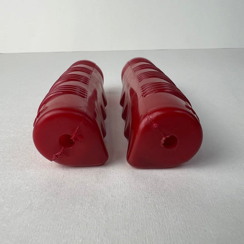 THIS IS A VINTAGE SET OF BICYCLE GRIPS. YOU WILL RECEIVE 1 PAIR. THE GRIPS IS IN RED COLOR. APPROXIMATELY 4" INCH LENGTH & THESE HAVE 7/8" INNER DIAMETER. THEY FIT 7/8" HANDLEBAR. STAMPED "M" ON THE GRIPS. THEY ARE RARE HARD TO COME BY GRIPS THAT IS NO LONGER SOLD IN STORES. I GOT THESE FROM A OLDER BIKE SHOP. THEY ARE NEW OLD STOCK, BRAND NEW, NEVER BEEN USED, MIGHT HAVE SOME LITTLE SHELF WEAR FROM BEING STORAGE. THE RUBBER STILL SOFT AND READY FOR USE. THEY WILL FITS MURRAY, SCHWINN, HUFFY, SEARS & MANY OTHERS.